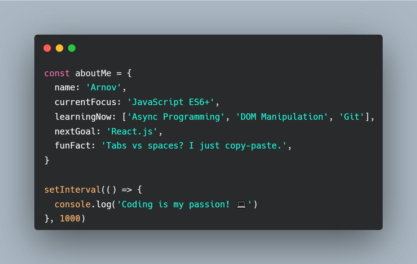- β‘ Fun fact: I started coding because it's fun to build things from scratch