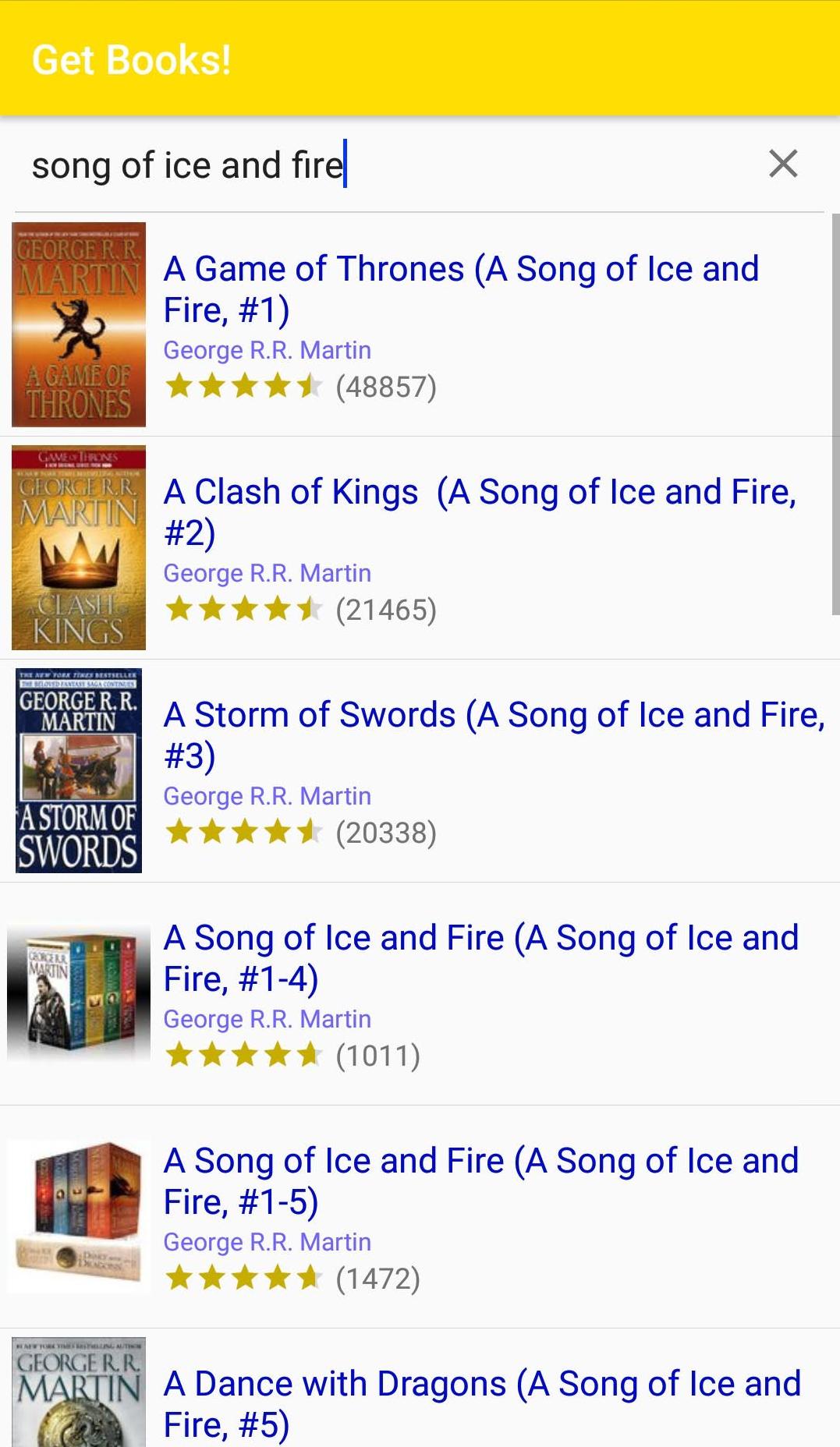 GR_API_Key(eg.<string name="GR_API_Key">_key_here_</string>) - Build and run the project.