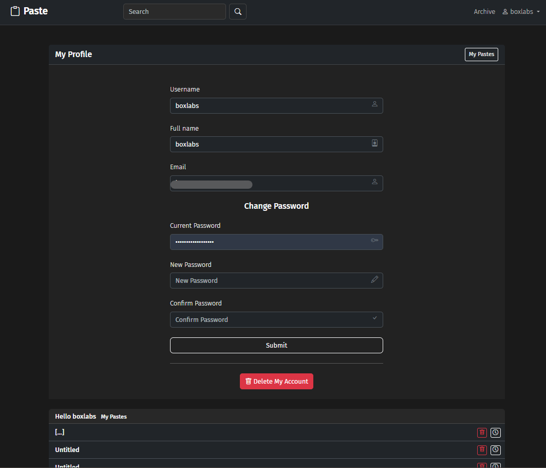 Any bugs can be reported at: https://github.com/boxlabss/PASTE/issues/new