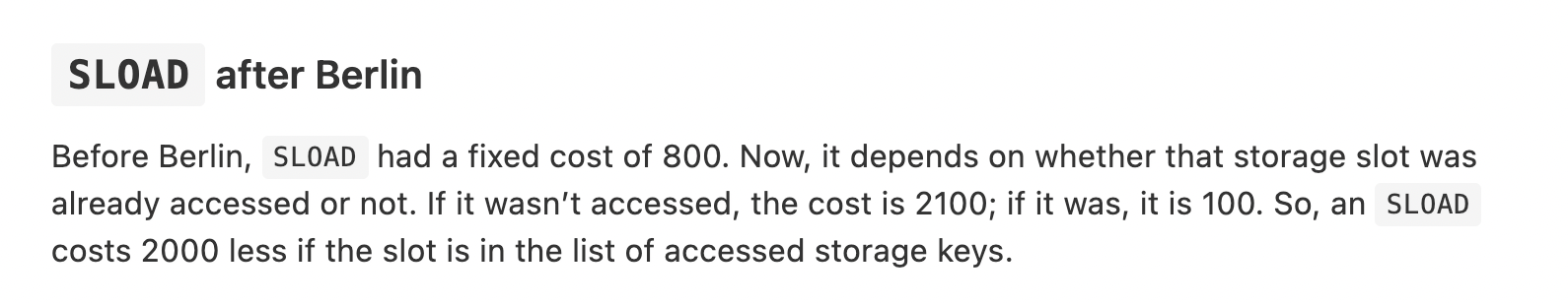 According to this document, after the Berlin harkfork, accessing the SLOAD opcode will now cost 2100 gas on the first run.