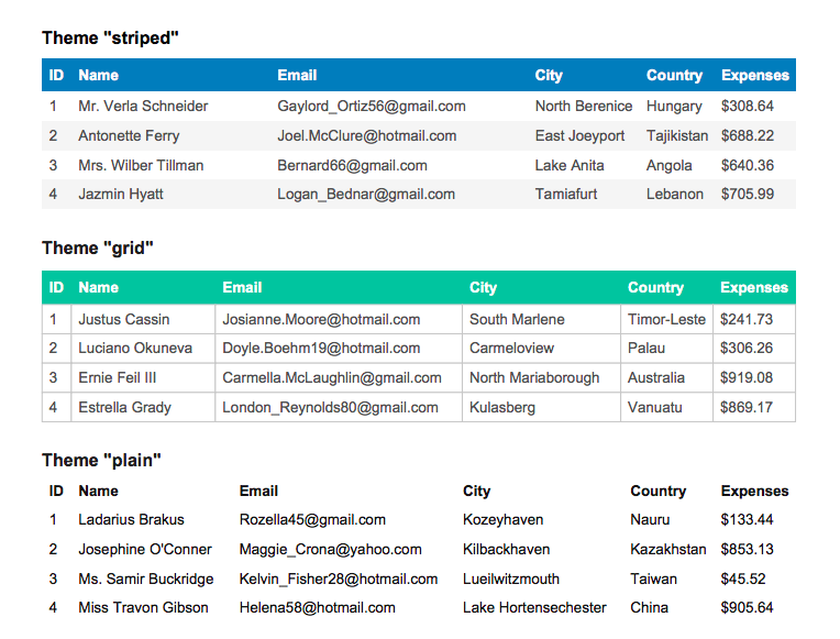| theme | "striped" | "grid" | "plain" (Optional) | "grid" |