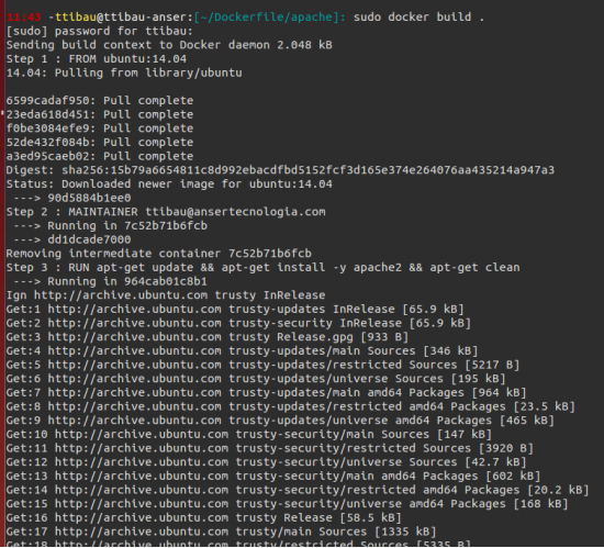- A segunda linha deve ser o MAINTAINER, que é a pessoa que criou a imagem;